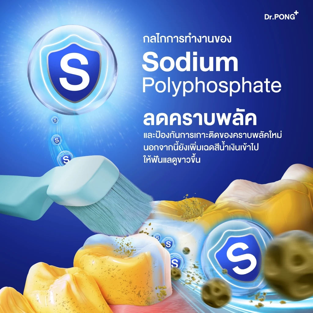 With Sodium Polyphosphate and combined with O-Cymen-50l to reduce the accumulation of bacteria or plaque With Flouride 1490 ppm No parabens, sugar and SLS